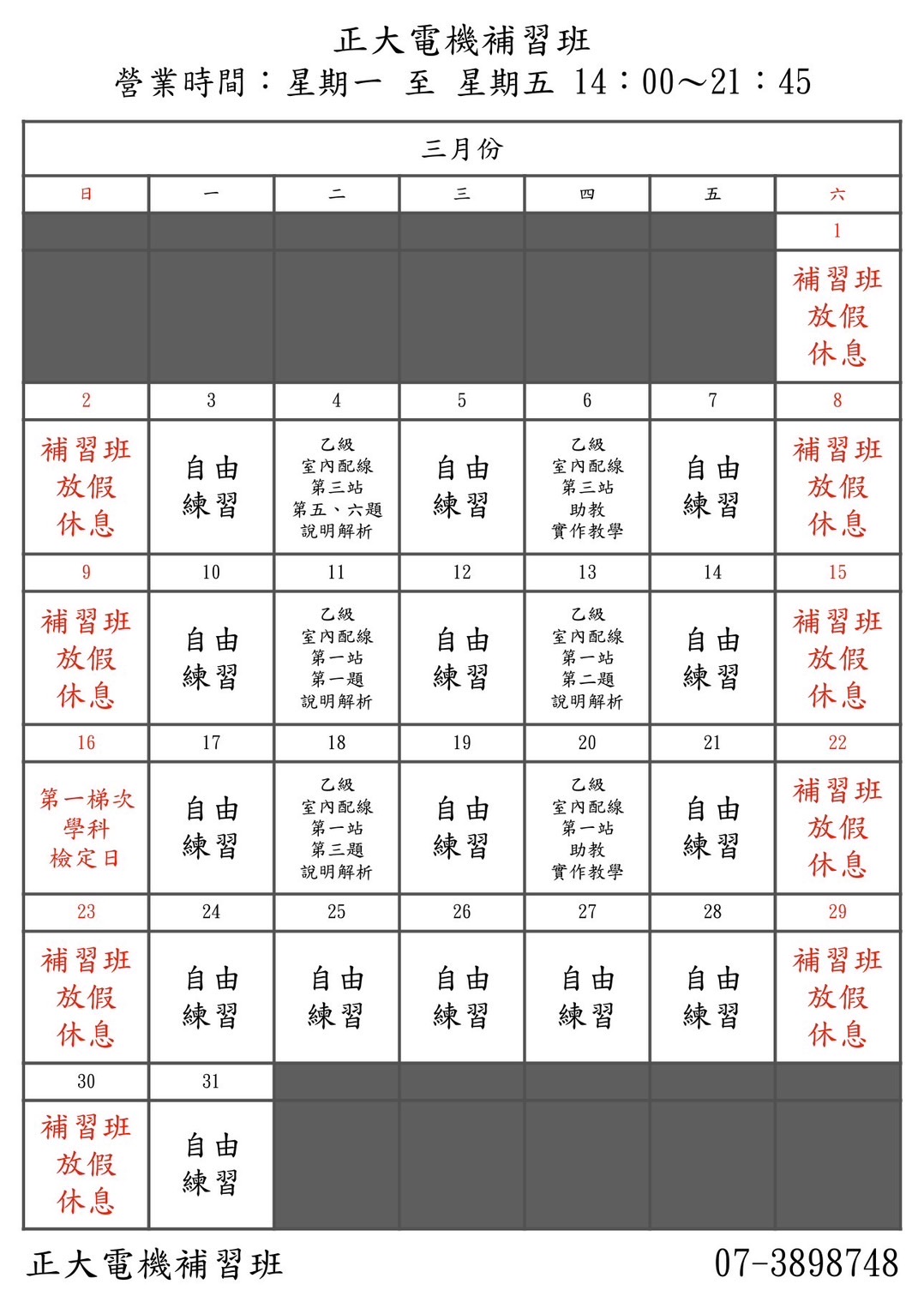 乙級室內配線技術士、明年第三梯次的課程表,請各位學員自行下載。